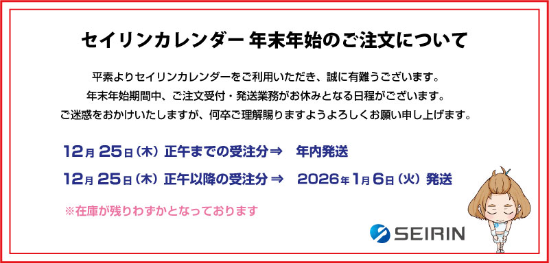 2026年セイリンオリジナルカレンダー販売開始のお知らせ