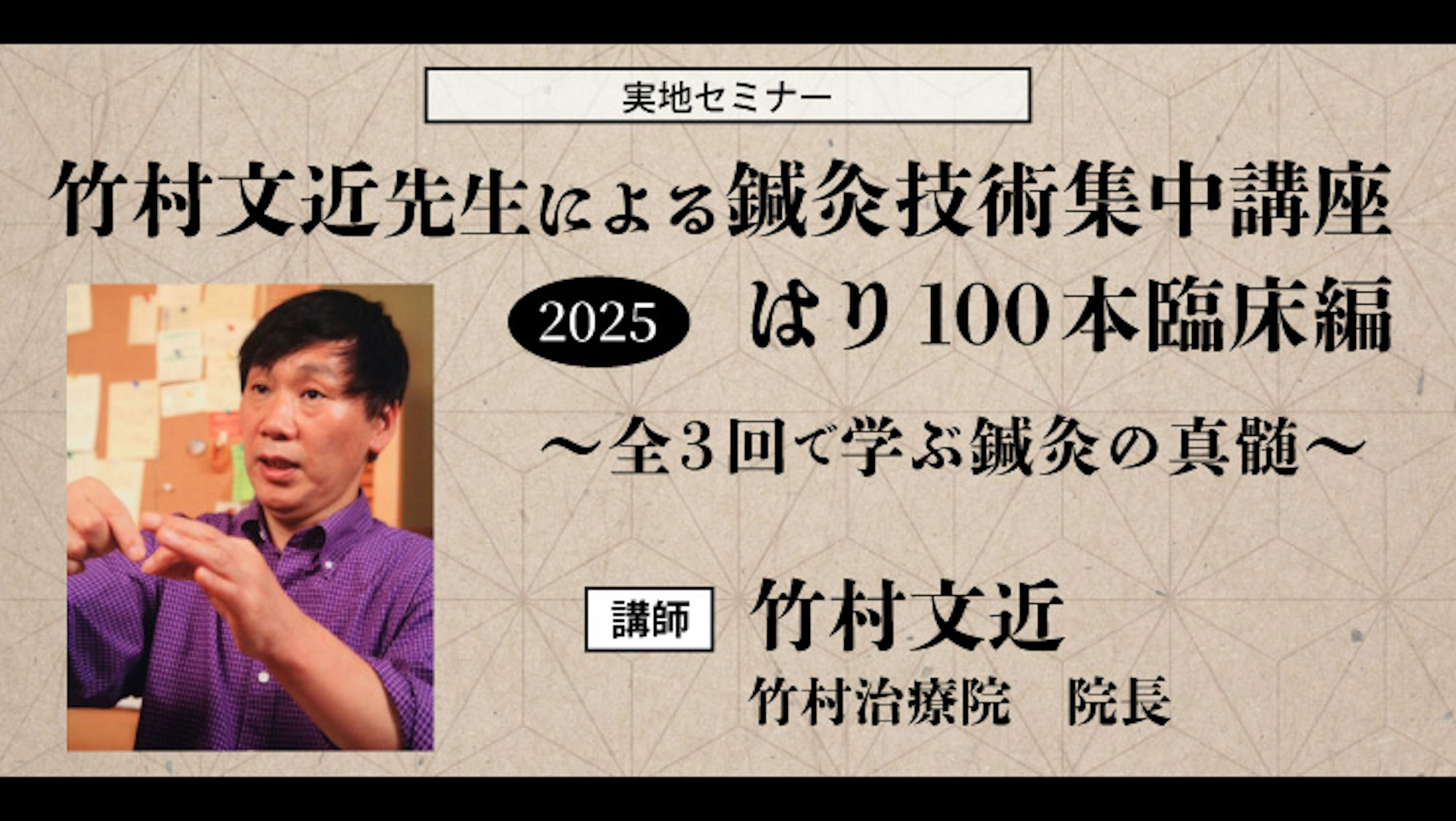- 2025/12/21~竹村文近先生による鍼灸技術集中講座2025 はり100本臨床編~全3回で学ぶ鍼灸の真髄~東京都竹村 文近主催その他