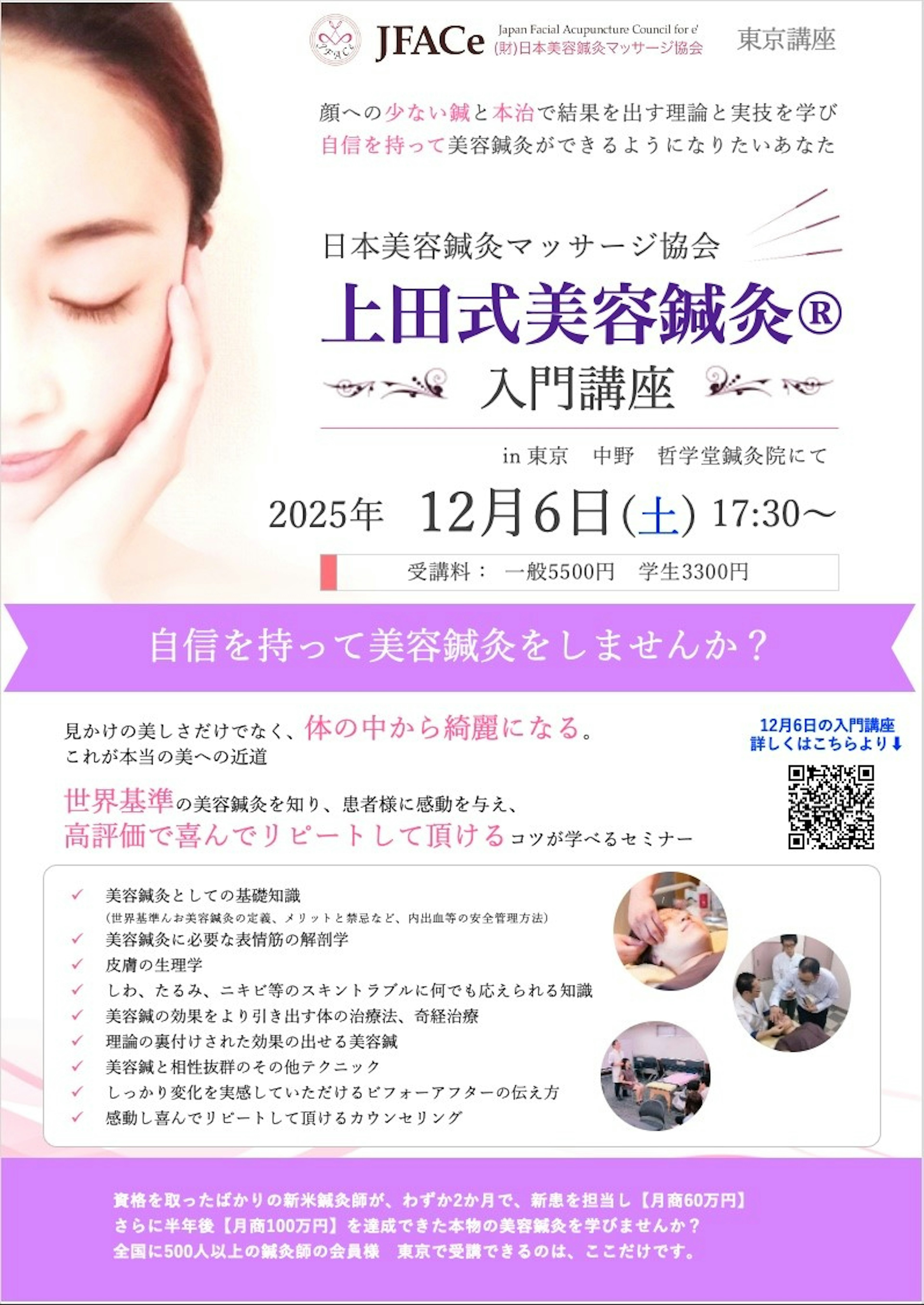 - 2025/12/06東京開催 上田式美容鍼灸入門講座美容外科では出来ない鍼灸師だからこそ出来る美容鍼灸とは?東京都外部美容